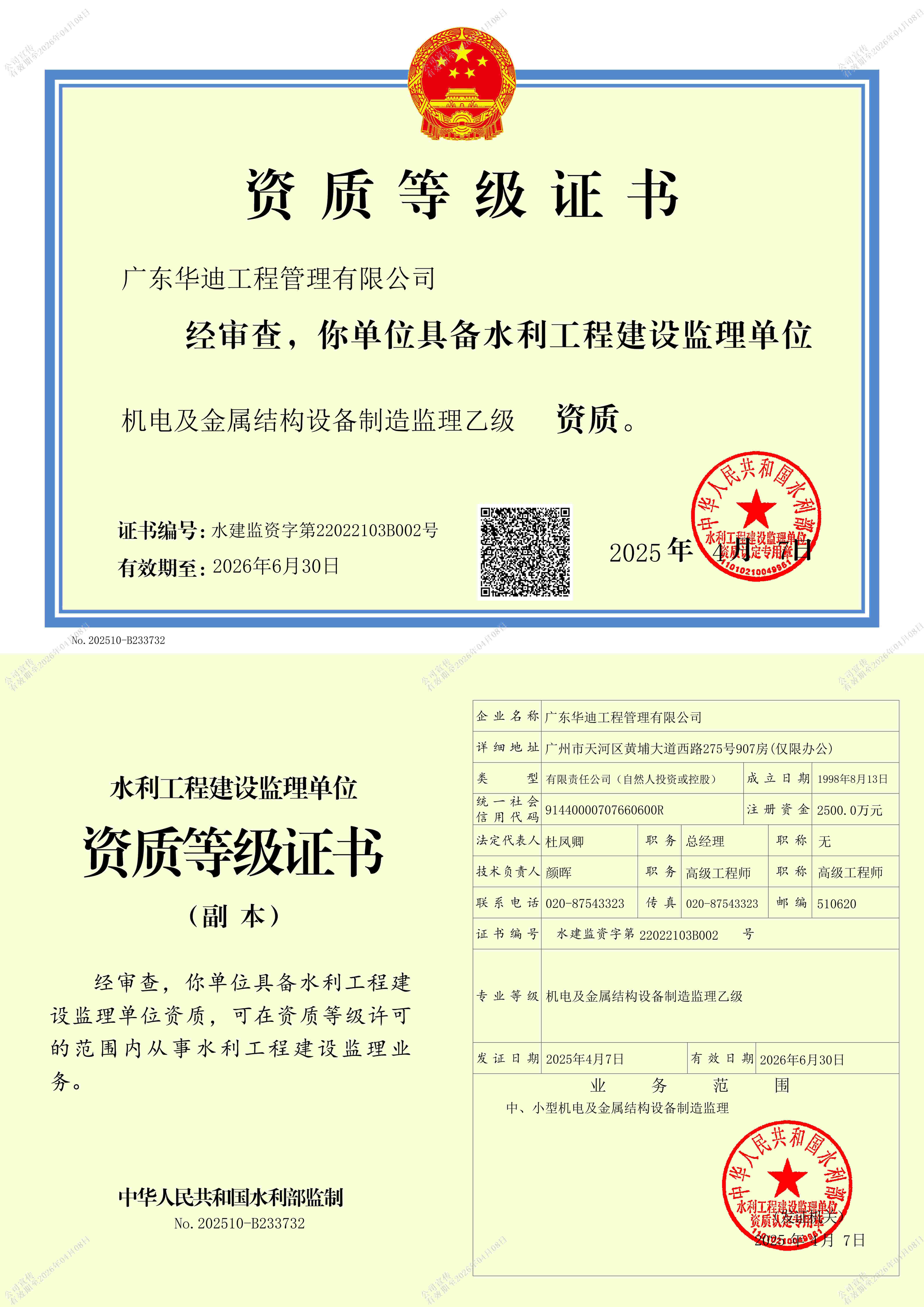 承擔(dān)所有專業(yè)工程類別建設(shè)工程項(xiàng)目的工程監(jiān)理業(yè)務(wù);承接各級水利工程、Ⅱ等及以下各等級水土保持工程的施工監(jiān)理業(yè)務(wù);中小型機(jī)電及金屬結(jié)構(gòu)設(shè)備制造、各類各等級水利工程建設(shè)環(huán)境保護(hù)監(jiān)理;